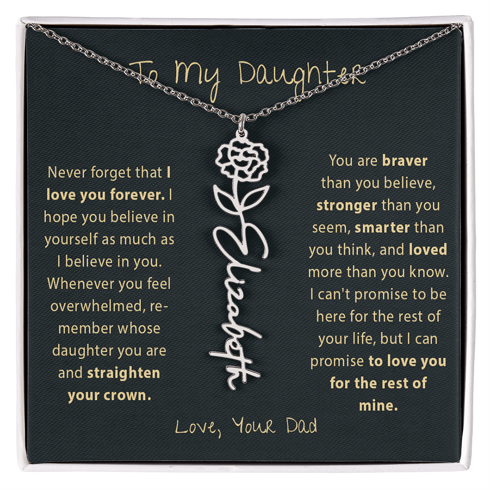 To my Daughter - Never forget that I love you, Dad - Birth Flower Name Necklace