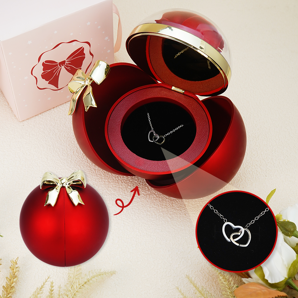 Forever Interlocked Hearts - Necklace & Rose Gift