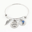 This bracelet comes with an angel wing, a stainless steel charm that say "A piece of my heart is in heaven", a stainless steel 15 mm round with name of choice and birth stone of choice. Charms are set on an adjustable stainless steel bracelet. Bracelet fits most female wrist.