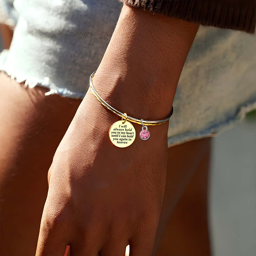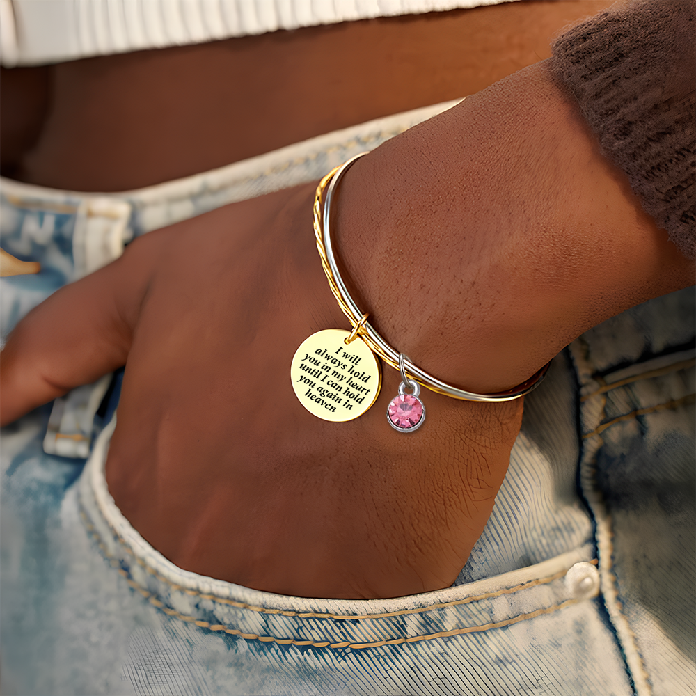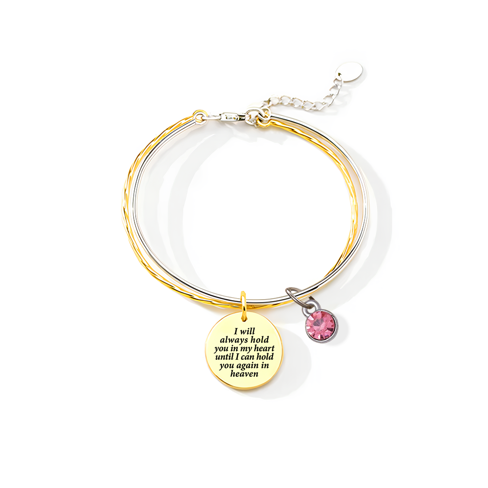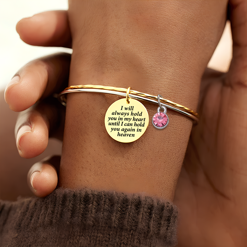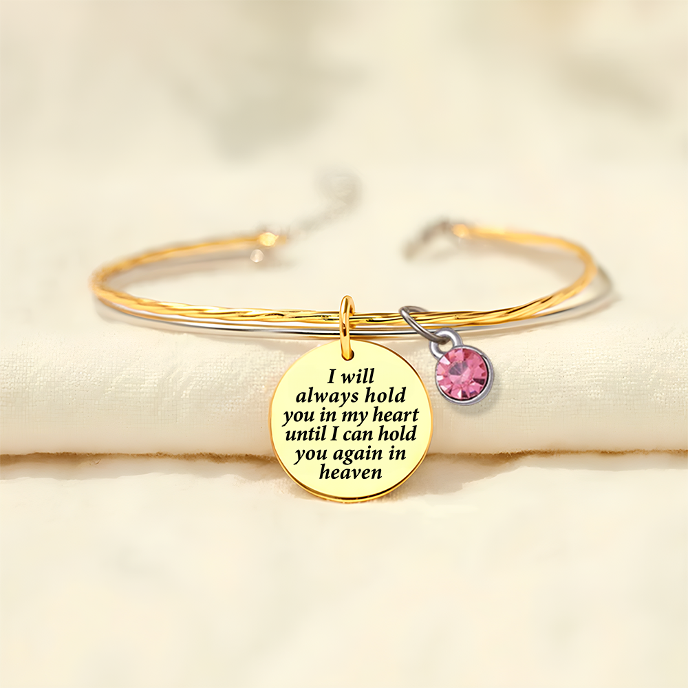 A reminder of fond memories and unconditional love, our I will hold you in my heart until I will hug you again in heaven - Memorial bracelet is the perfect way to memorialize a loved one.