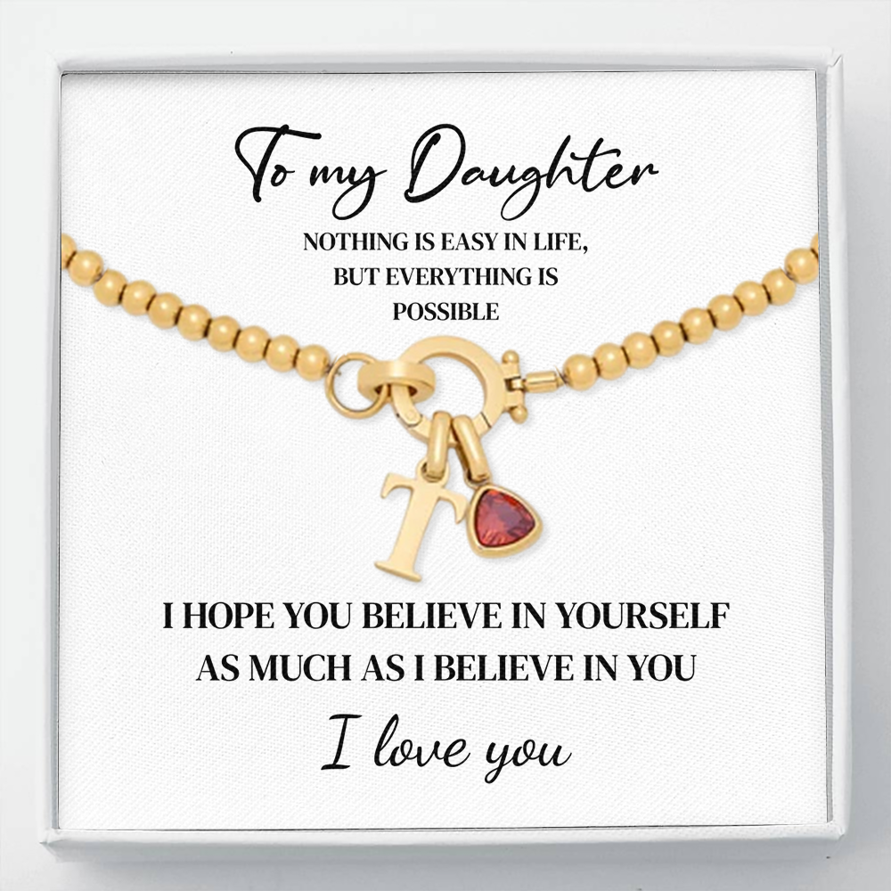To my Daughter - Beaded Birthstone Initial Charm Bracelet