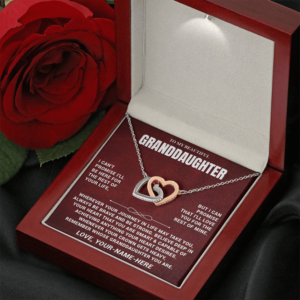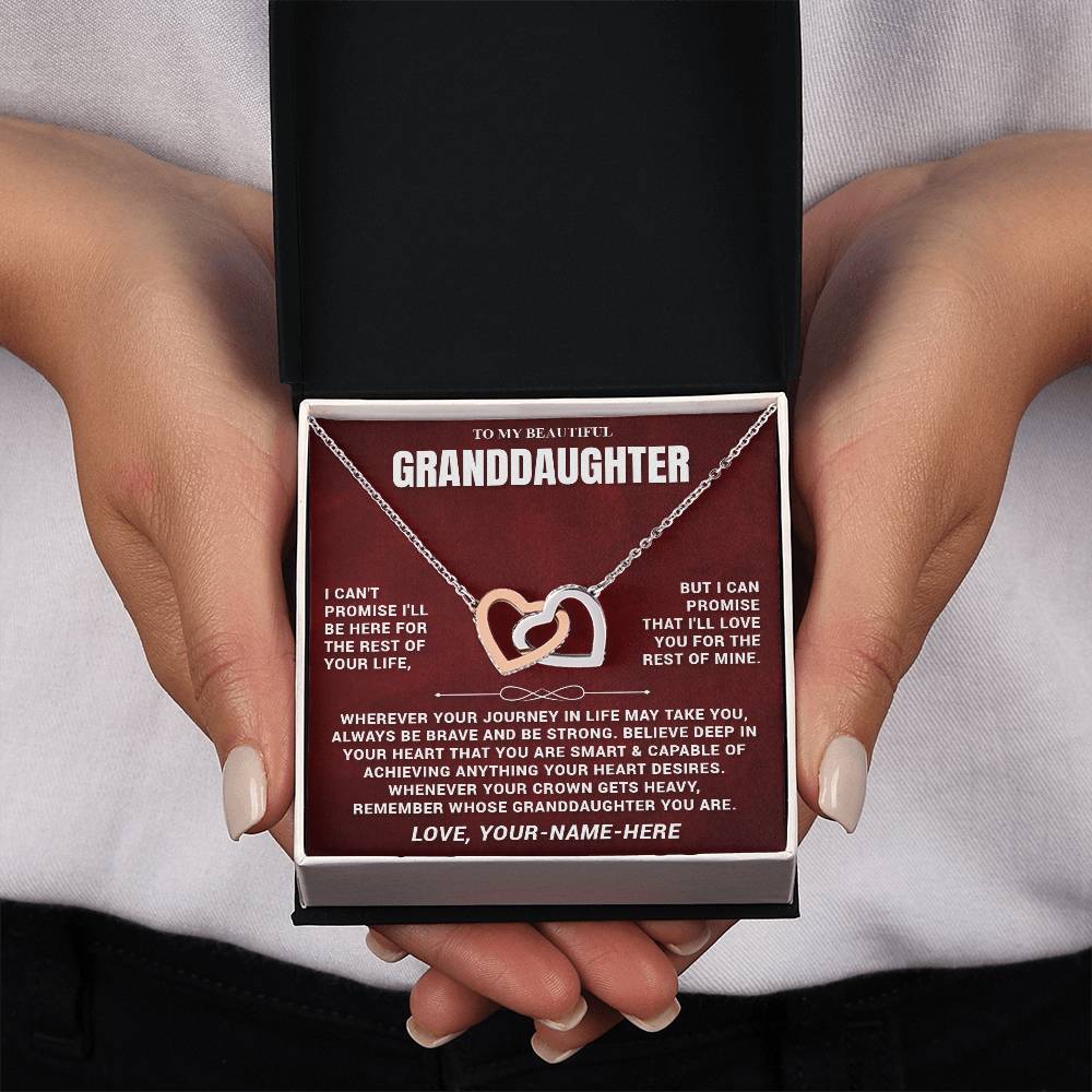 "TO MY BEAUTIFUL GRANDDAUGHTER - I can't promise I'll be here for the rest of your life, but I can promise that I'll love you for the rest of mine. Wherever your journey in life may take you, always be brave and be strong. Believe deep in your heart that you are smart and capable of achieving anything your heart desires. Whenever your crown gets heavy, remember whose Granddaughter you are. LOVE, YOUR-NAME"