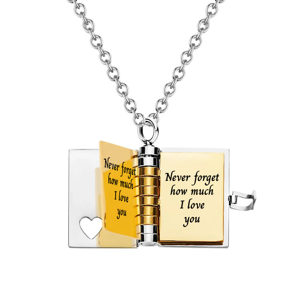 Never forget how much I love you - Book necklace - Gold