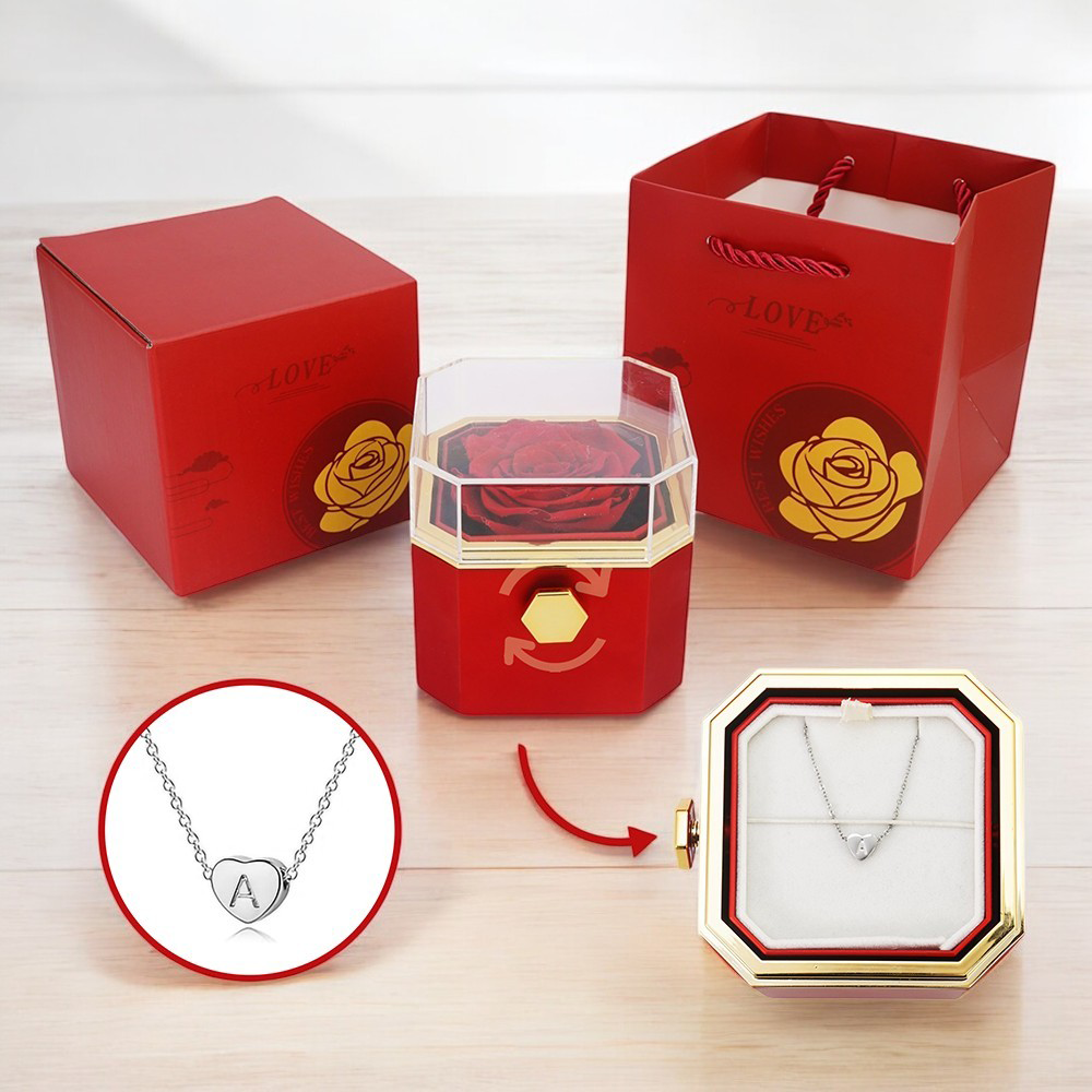 Our eternal rose box with hidden personalized necklace is a gift that lasts a lifetime. Featuring a real preserved rose that will last forever, this gift is the perfect symbol of eternal love.