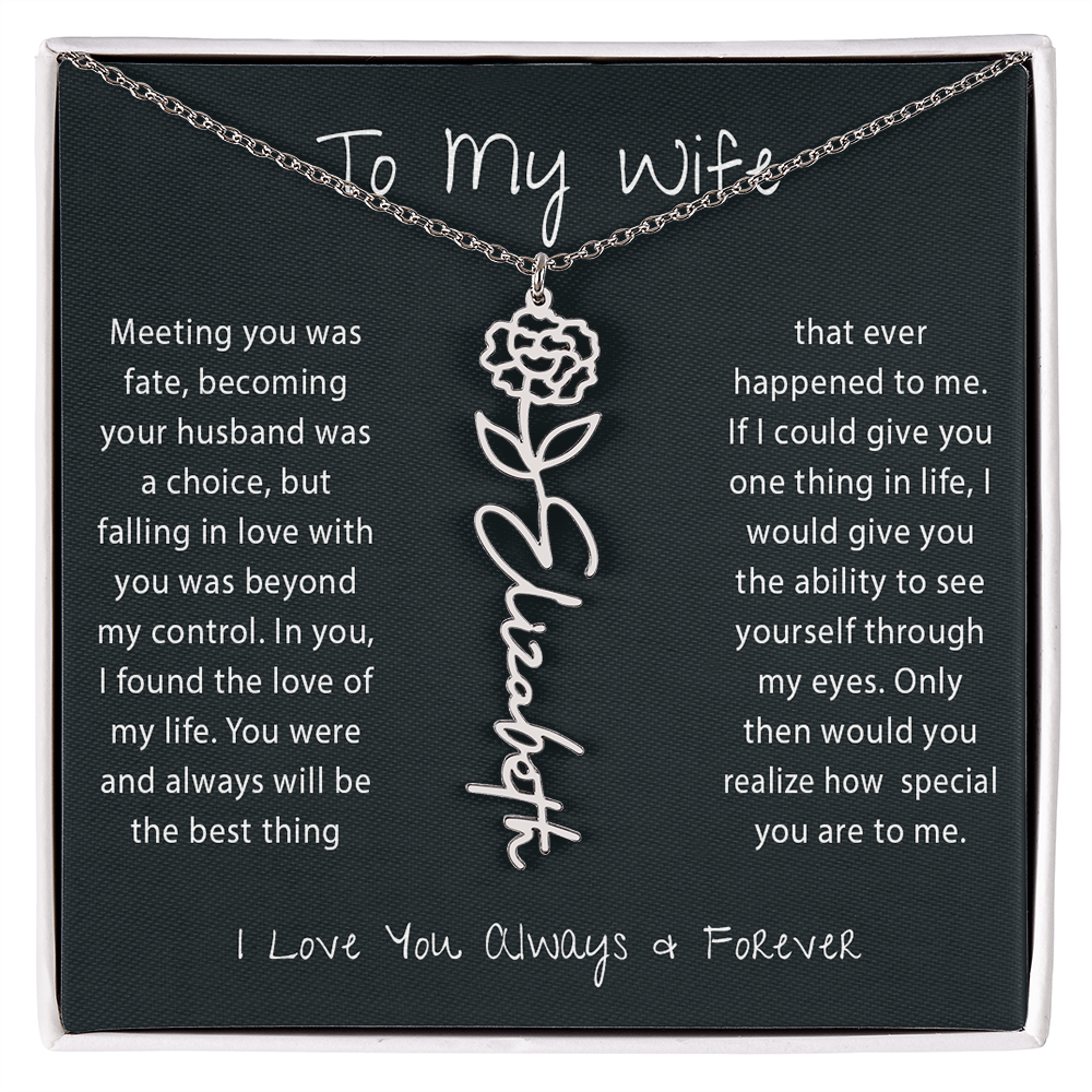 To My Wife - Birth Flower Name Necklace