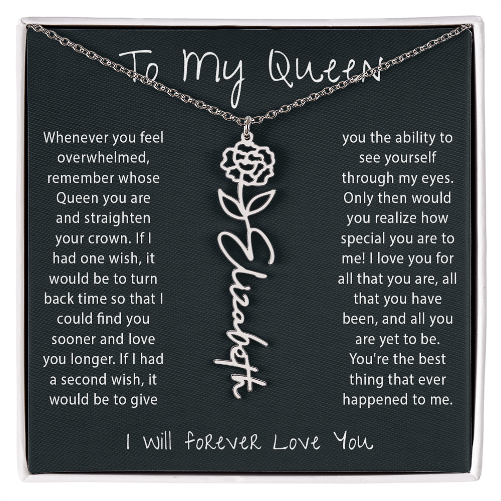 To my Queen - Birth Flower Name Necklace