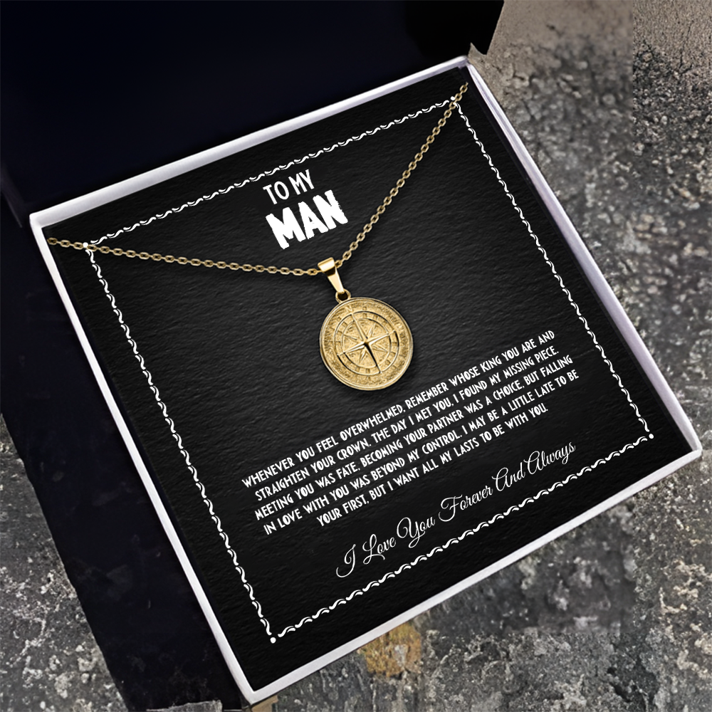 To my Man - “I found my missing piece” - Compass necklace - Gold